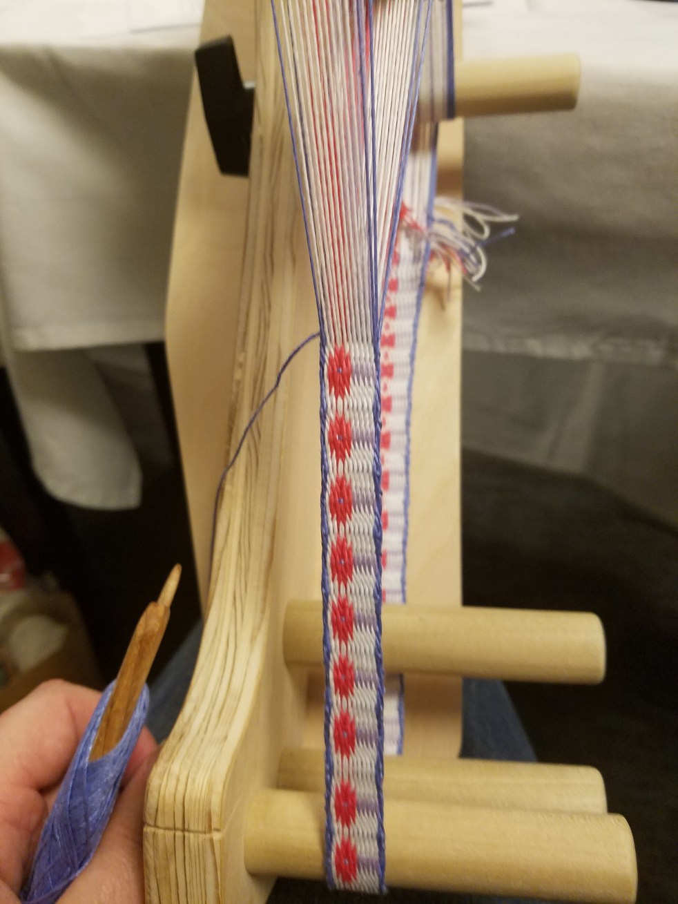 The featured photo is the band I came up with. I originally wanted to do a lollipop, but clearly did not grock the whole “S” and “Z” threading properly. So it ended up being a Truffula Tree. However, as people were coming along, some thought with different colors, it could be a poppy, and I tend to agree. That’s the fun of design class, you just play and play. With most of my samples from classes, I’m able to find things to do with them later. I’m sure the same will hold true for the Truffula Trees.